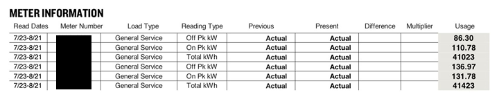 • Billing demand shown on the bill (kW)
